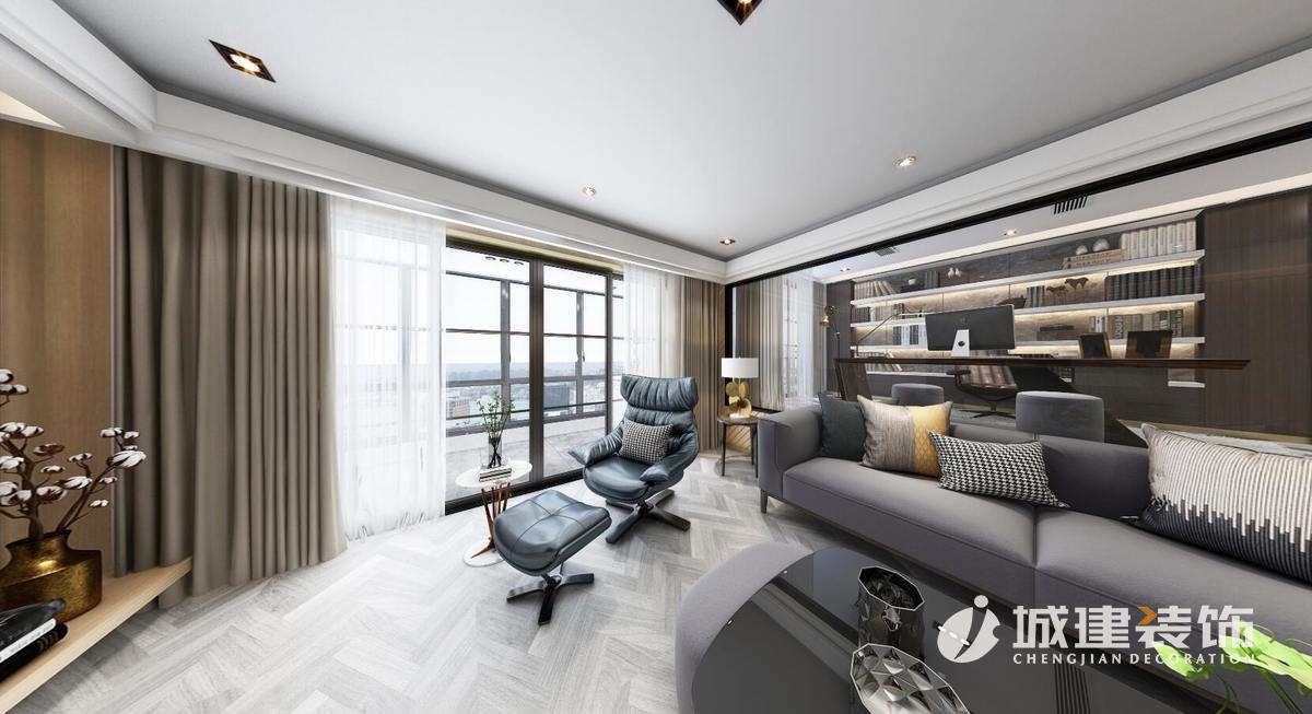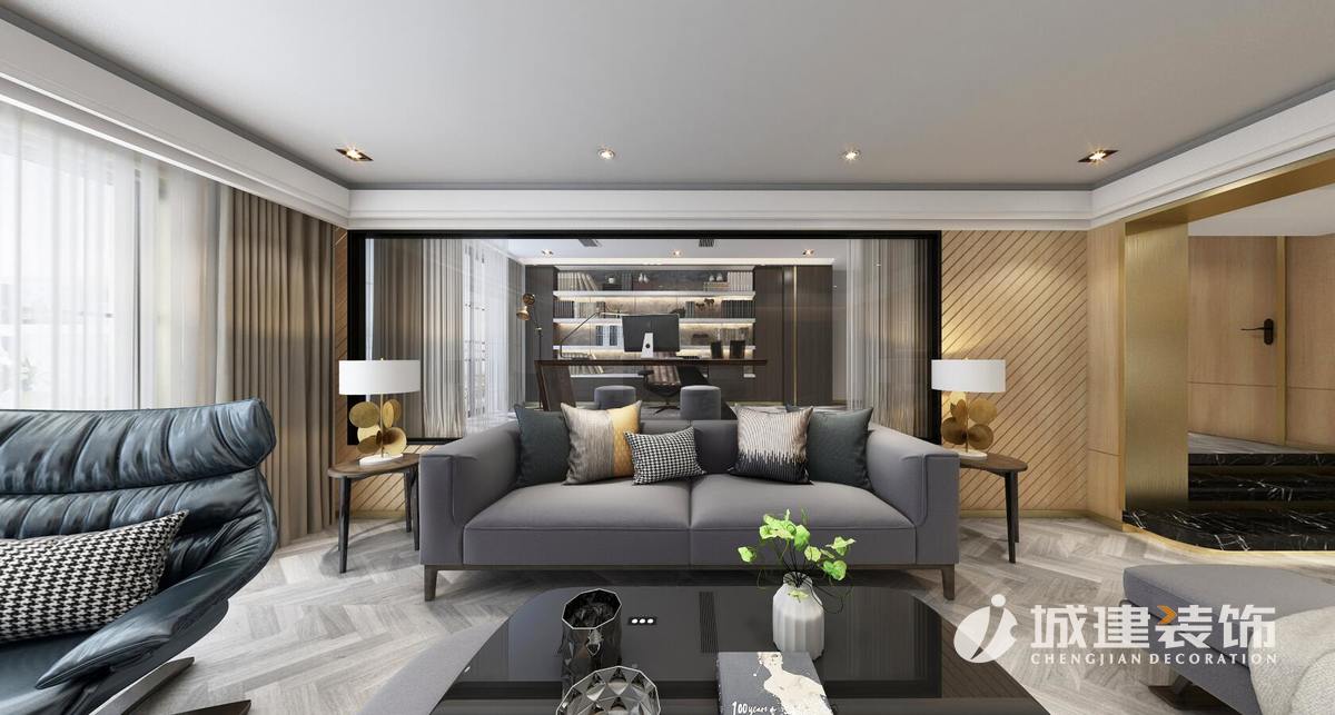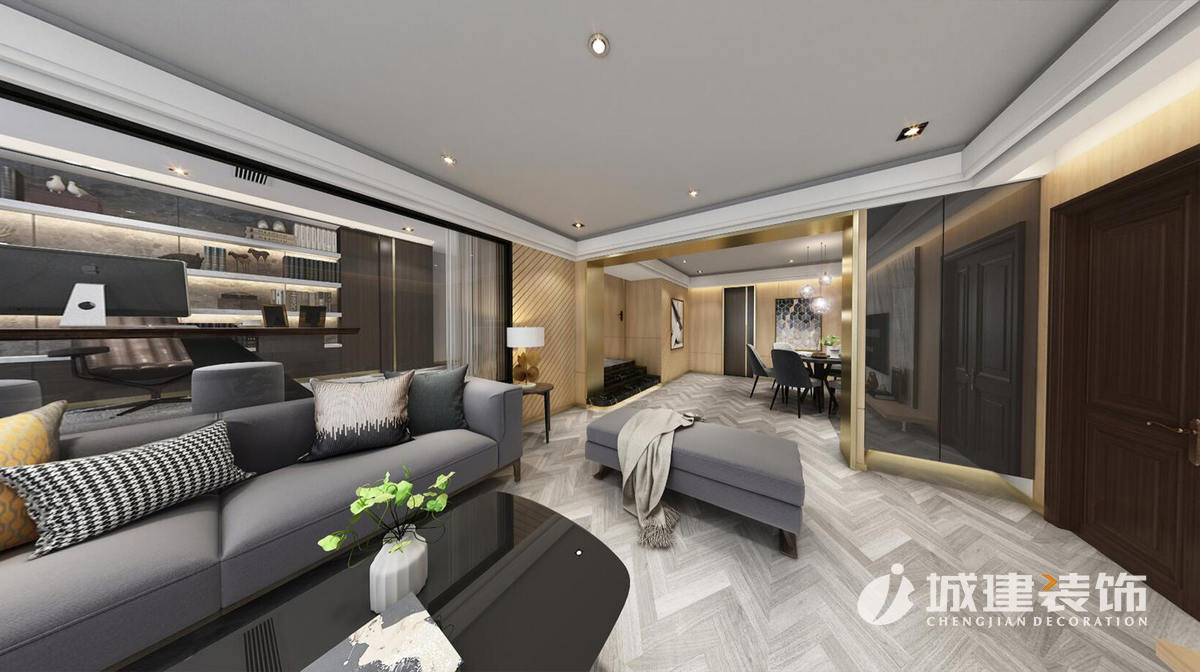 經(jīng)過改造后每個(gè)房間變的方正,儲(chǔ)藏空間不再狹小。本案亮點(diǎn)將客廳書房打通,玻璃幕墻作為隔斷,使整個(gè)空間變的通透明亮、增加現(xiàn)代感。一家人無論在客廳。餐廳還是臥室都可以把整個(gè)家維系起來使這個(gè)家變的親密無間。