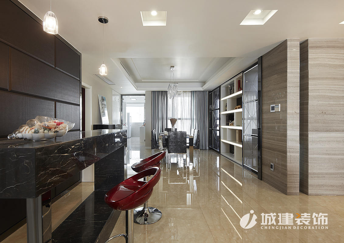入戶右側區(qū)域設計出吧臺,對追求潮流的年輕人而言,極具時尚品味。