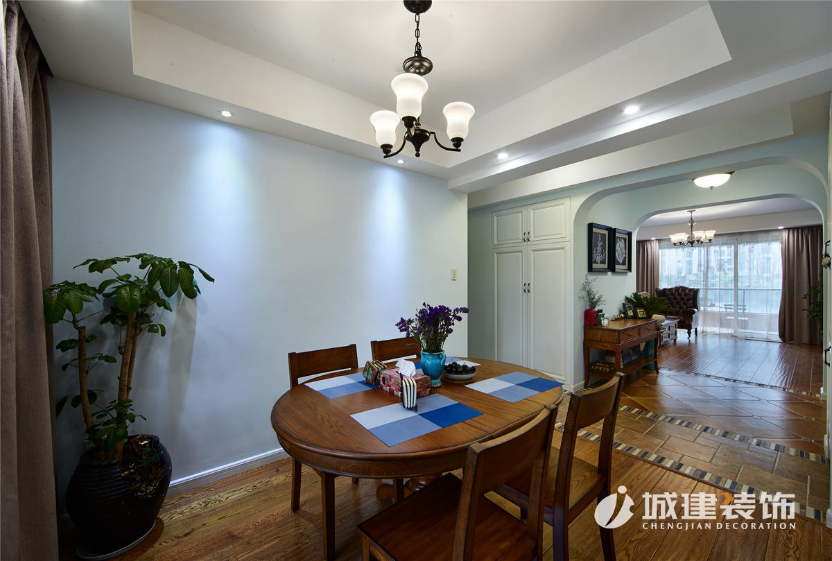 本案例沒有運(yùn)用藍(lán)色與白色的經(jīng)典搭配,而是白色的天花板,淡藍(lán)色的墻面,木質(zhì)地板與瓷磚拼接的地面,仿佛大海將天與地連成一片,是不是很“接地氣”呢!幾乎每個(gè)空間都有湖藍(lán)、海藍(lán)色的點(diǎn)綴,配上清新的花草,還有浪漫的拱廊,一切都那么自然柔和!