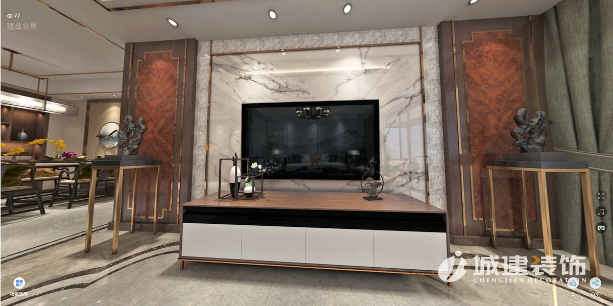 本案采用新中式風(fēng)格,通過中式風(fēng)格的特征,表達(dá)清雅含蓄。端莊豐華的東方式精神境界的追求。新中式不是純粹的傳統(tǒng)元素堆砌,而是通過對傳統(tǒng)文化的認(rèn)識,將現(xiàn)代元素和傳統(tǒng)元素結(jié)合在一起,以現(xiàn)代人的審美需求來打造富有傳統(tǒng)韻味的裝飾。