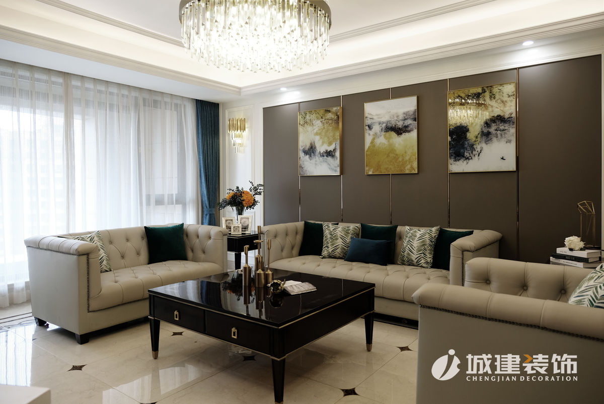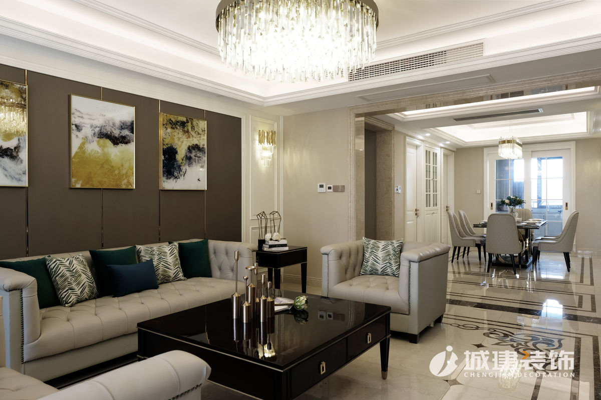 本案是紳華府裝修實景圖,面積為160方,業(yè)主喜歡簡單又不失格調(diào)的家居,這樣以后住起來不會過于枯燥或者繁雜,因此采用輕奢風(fēng)格,客廳的紗簾能夠很大程度的增加空間的溫柔感,皮質(zhì)沙發(fā)與吊頂燈飾可以讓客廳有奢華的感覺,但同時也不會減少居住的舒適性,整個空間舒適也沒有過大的奢華。