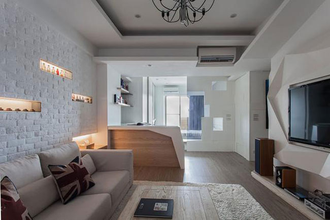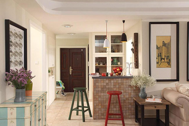 2.對于單身公寓之類的小戶型家居,一般沒有餐廳的設(shè)計,我們只能在床上或者客廳吃飯,因為他們的高度和擺放都沒有吃飯的因素在里面因此非常不方便,因此設(shè)計一個吧臺,可以將臥室與客廳隔開的同時還能做個小小的餐桌使用,會方便很多。