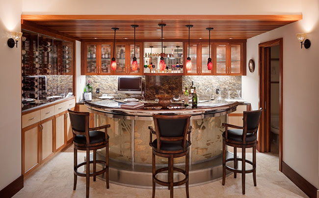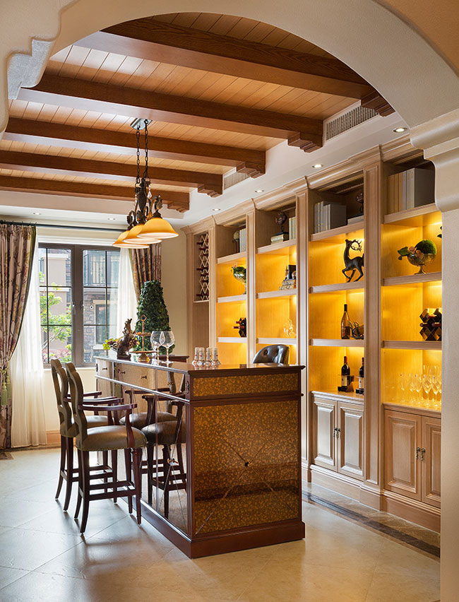 4.別墅吧臺,別墅是所有家居結(jié)構(gòu)中功能空間和待客最豐富的一個戶型,對檔次的需求也非常高。無論是日常待客、家庭的小聚還是獨酌,一個高逼格的吧臺能夠很好的提升這些事情的格調(diào)。