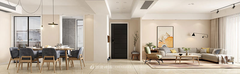 因為這個過道和入戶門是正對著的,兩邊都是直角在視覺上會感覺過于鋒利,且過道顯得狹窄。
