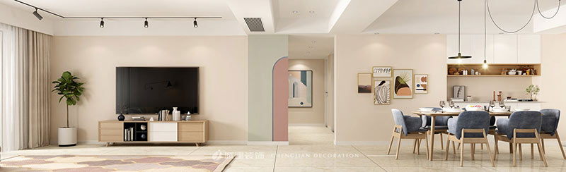 它本身玄關區(qū)域較小,且入戶門直對陽臺,這種情況一般會做個隔斷遮擋一下視線。