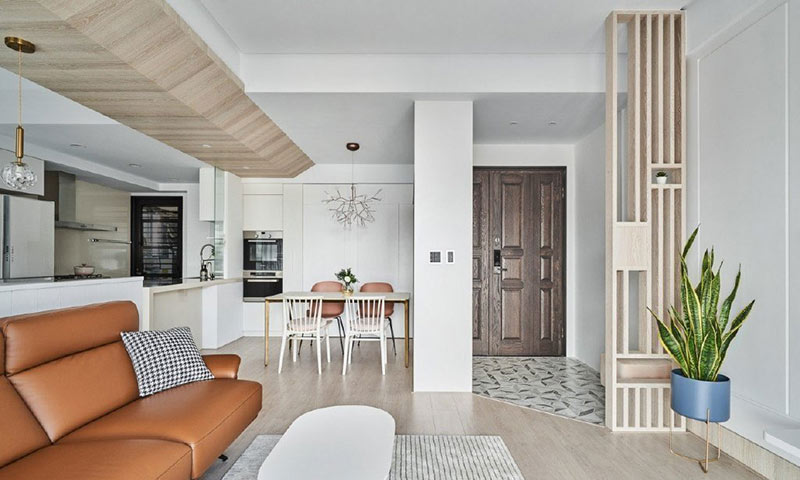 通常,同一個空間內(nèi)兩個不同功能區(qū),我們會用門來分隔開,但這樣會讓空間變得封閉狹窄。