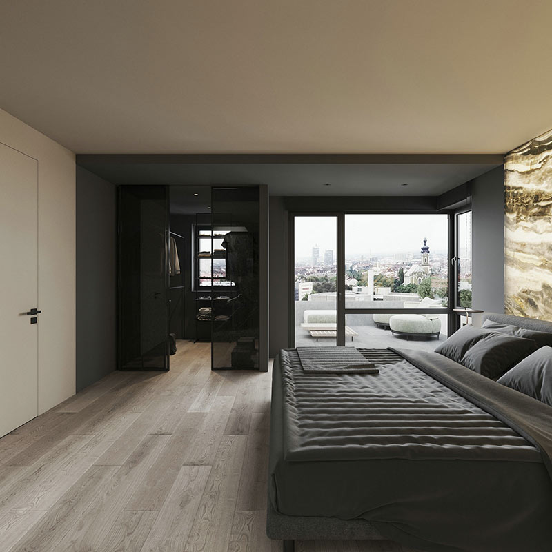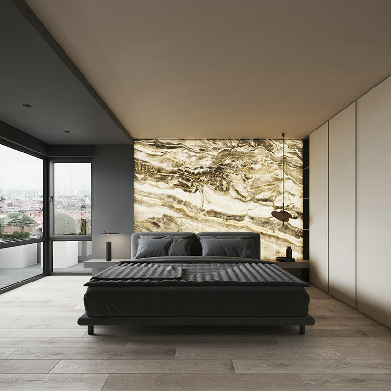 拐角的位置讓形狀隨著移動產(chǎn)生變化,淡化墻體鋒利的直角線條;